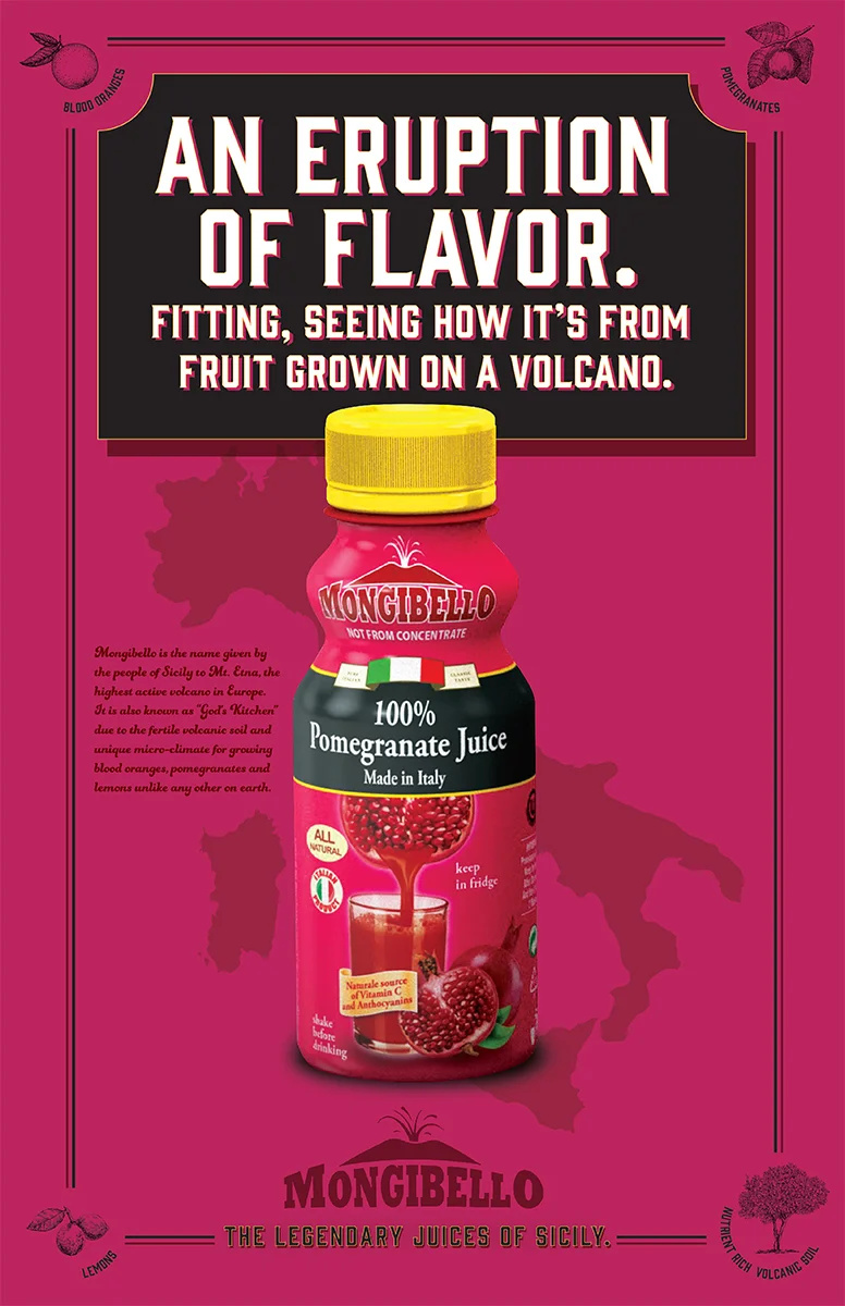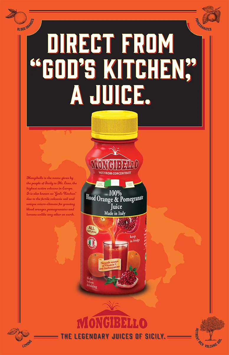 Mongibello Juice comes from fruit grown on an active volcano in Italy, in an area they call “God’s Kitchen.” The Italians have been enjoying it for ages. Now it’s coming to America.